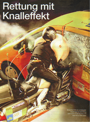 Bei einem schweren Frontalzusammenstoß messen die vier Crash-Sensoren an der Vorderradgabel das Ausmaß der Verzögerung, die durch einen Aufprall verursacht wird. Die Daten werden an die ECU übermittelt, die entscheidet, ob eine Kollision vorliegt und der Airbag aktiviert werden muss. Falls die Berechnungen der ECU ergeben, dass ein Auslösen des Airbags erforderlich ist, sendet die ECU ein elektrisches Signal an die Gaspatrone, die sofort den Airbag mit Stickstoff entfaltet. Innerhalb von 0,060 Sekunden nach dem Aufprall kann der Airbag so die Bewegungsenergie des Fahrers in Vorwärtsrichtung zu großen Teilen aufnehmen. Gleichzeitig wird die Geschwindigkeit, mit der der Fahrer vom Motorrad weggeschleudert wird, reduziert. Die Schwere der Verletzungen durch einen Aufprall auf ein gegnerisches Fahrzeug oder die Straße werden damit erheblich verringert.